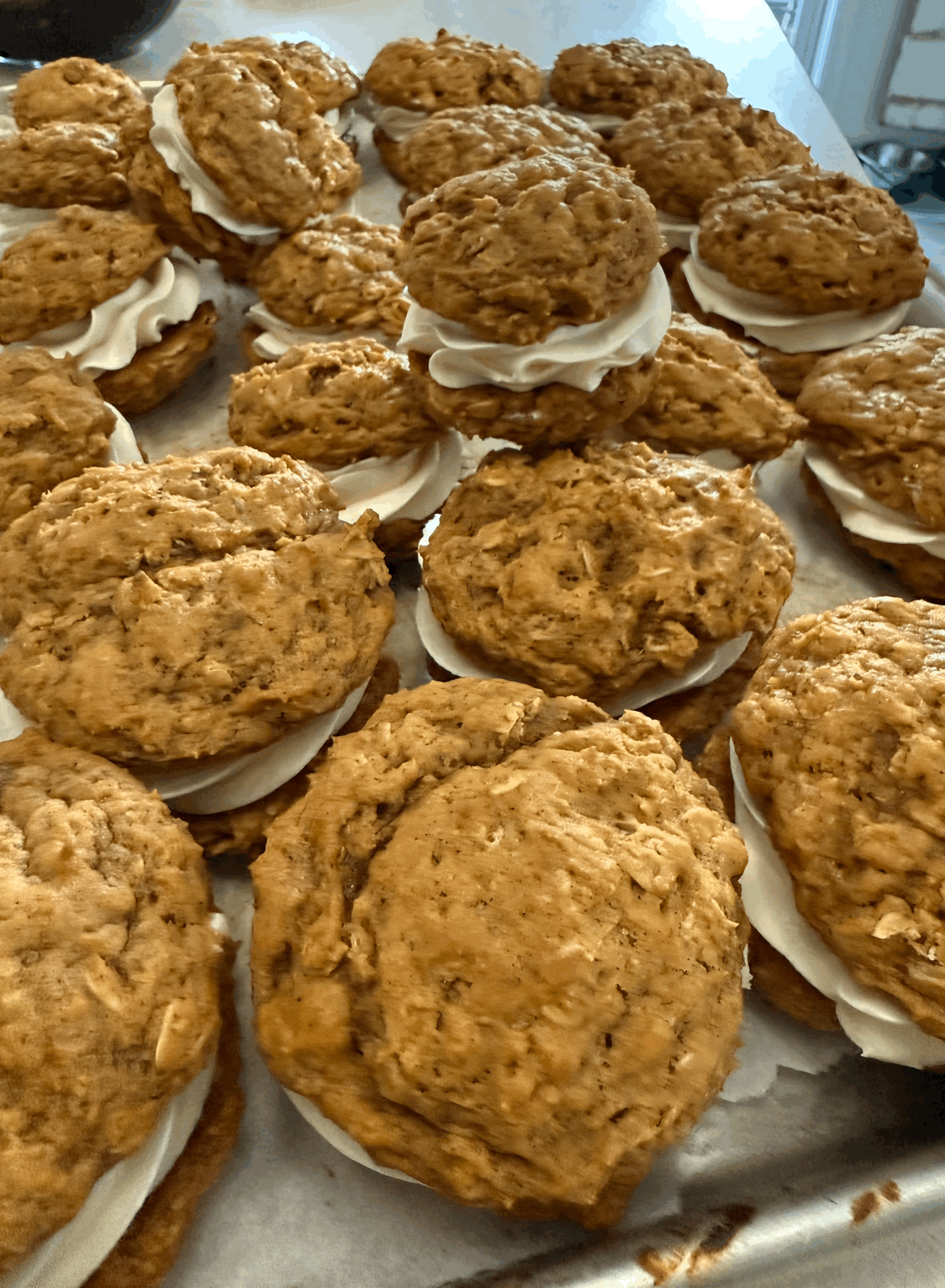 Pecan Blondies $27.00 brown butter chocolate chip cookie $2.75 Pumpkin Whoopie Pie $3.50 Cookie dough cake $65.00 Apple cider cake $68.00 Goth chocolate cake $0.00 Pumpkin Roll $30.00 Pumpkin Cinnamon Rolls with maple cream cheese frosting $17.50 Caramel apple cheesecake $45.00 Apple Cider Donuts $24.00 Apple Crumble Pie $25.00 gift card from $25.00